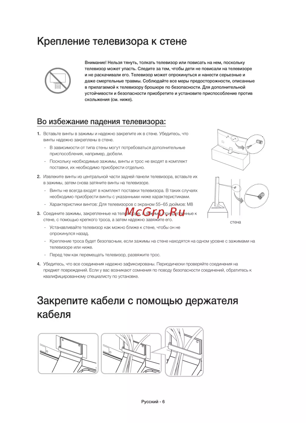 - Во избежание падения телевизора p.6