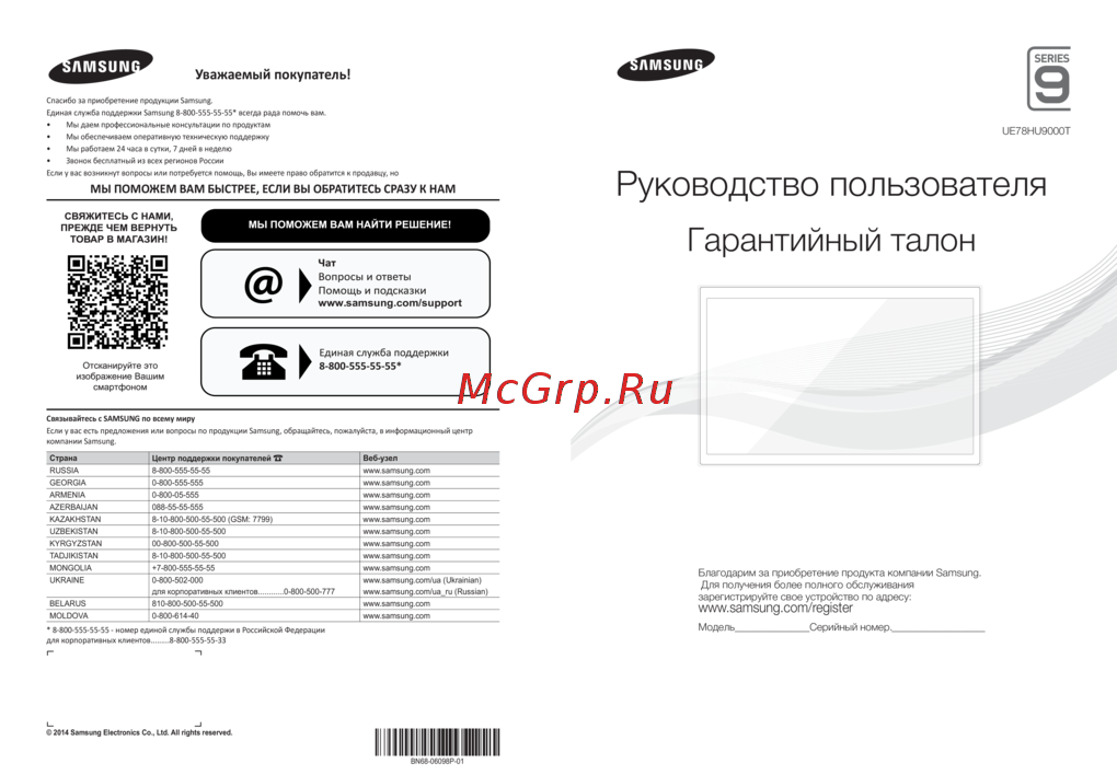 - Спасибо за приобретение продукции samsung единая служба поддержки samsung 8 800 555 55 55 всегда рада помочь вам мы даем профессиональные консультации по продуктам p.1