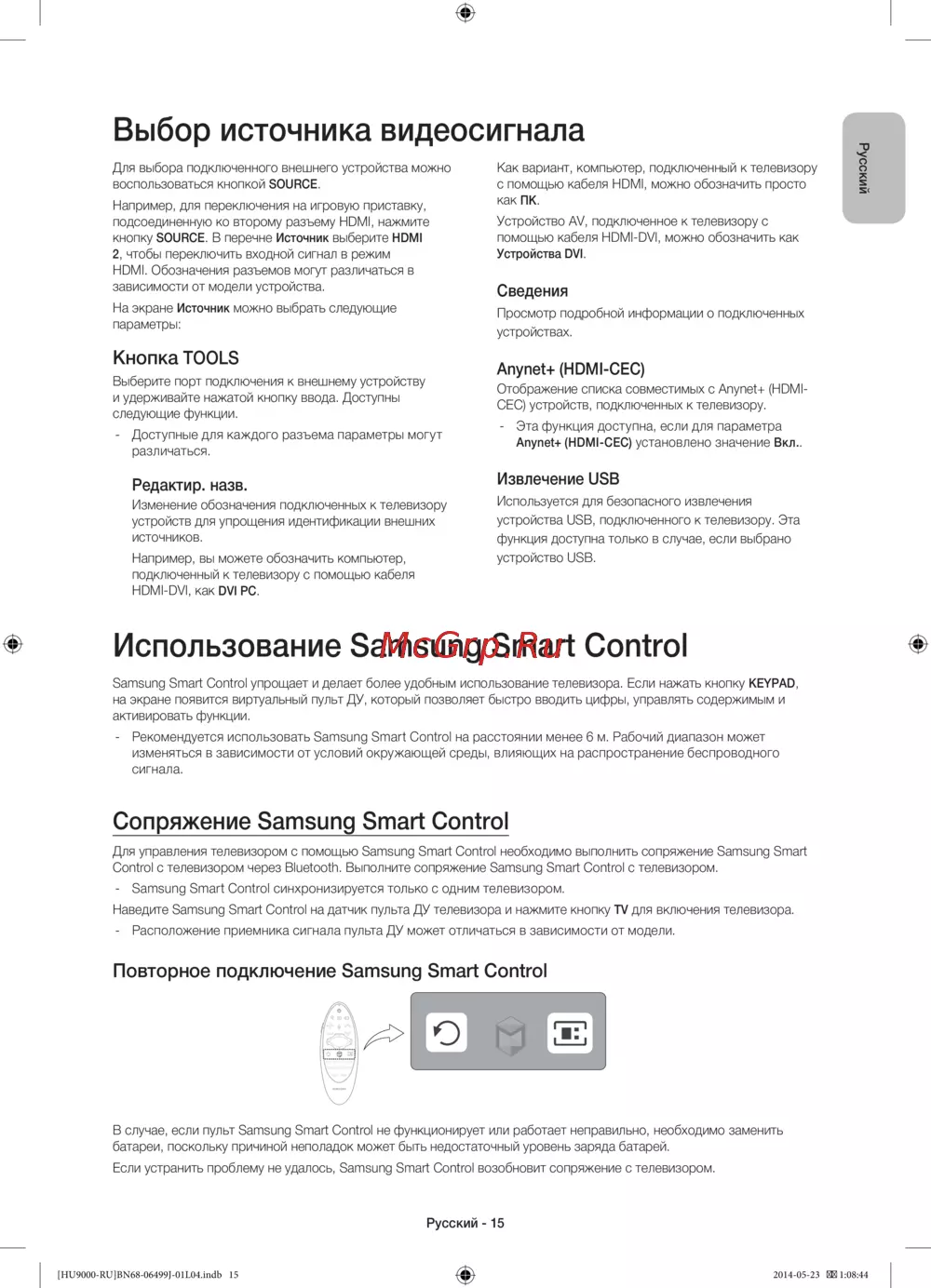 - Использование samsung smart control p.25