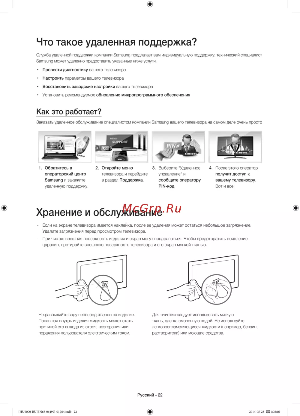 Узнайте, как получить удаленную поддержку для диагностики, настройки и восстановления телевизора. Инструкция по заказу и советы по обслуживанию и чистке устройства.