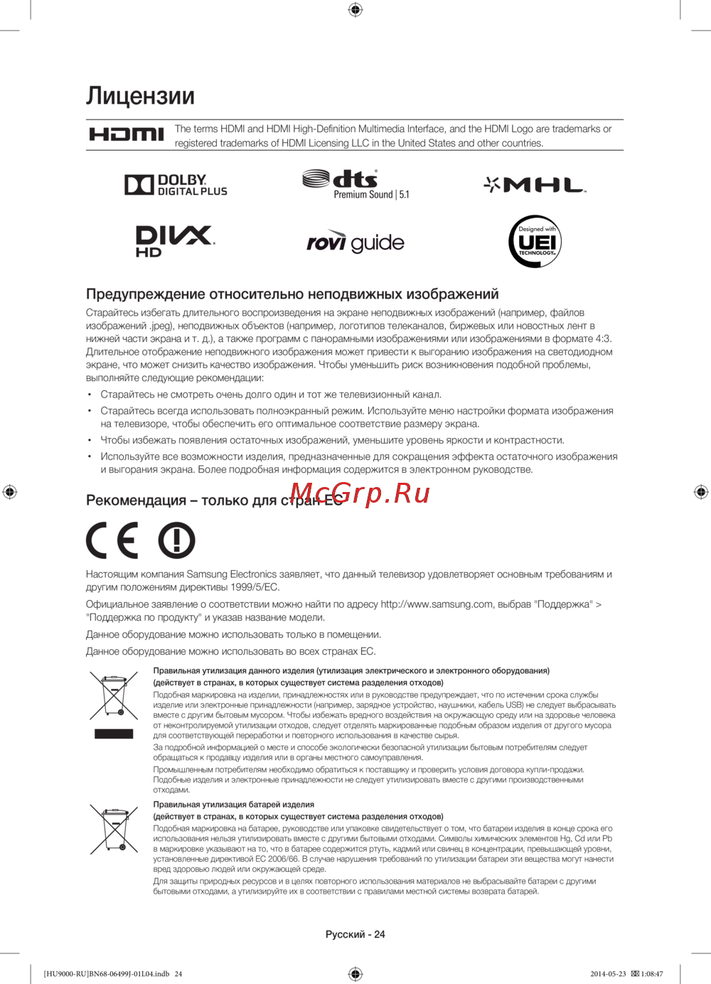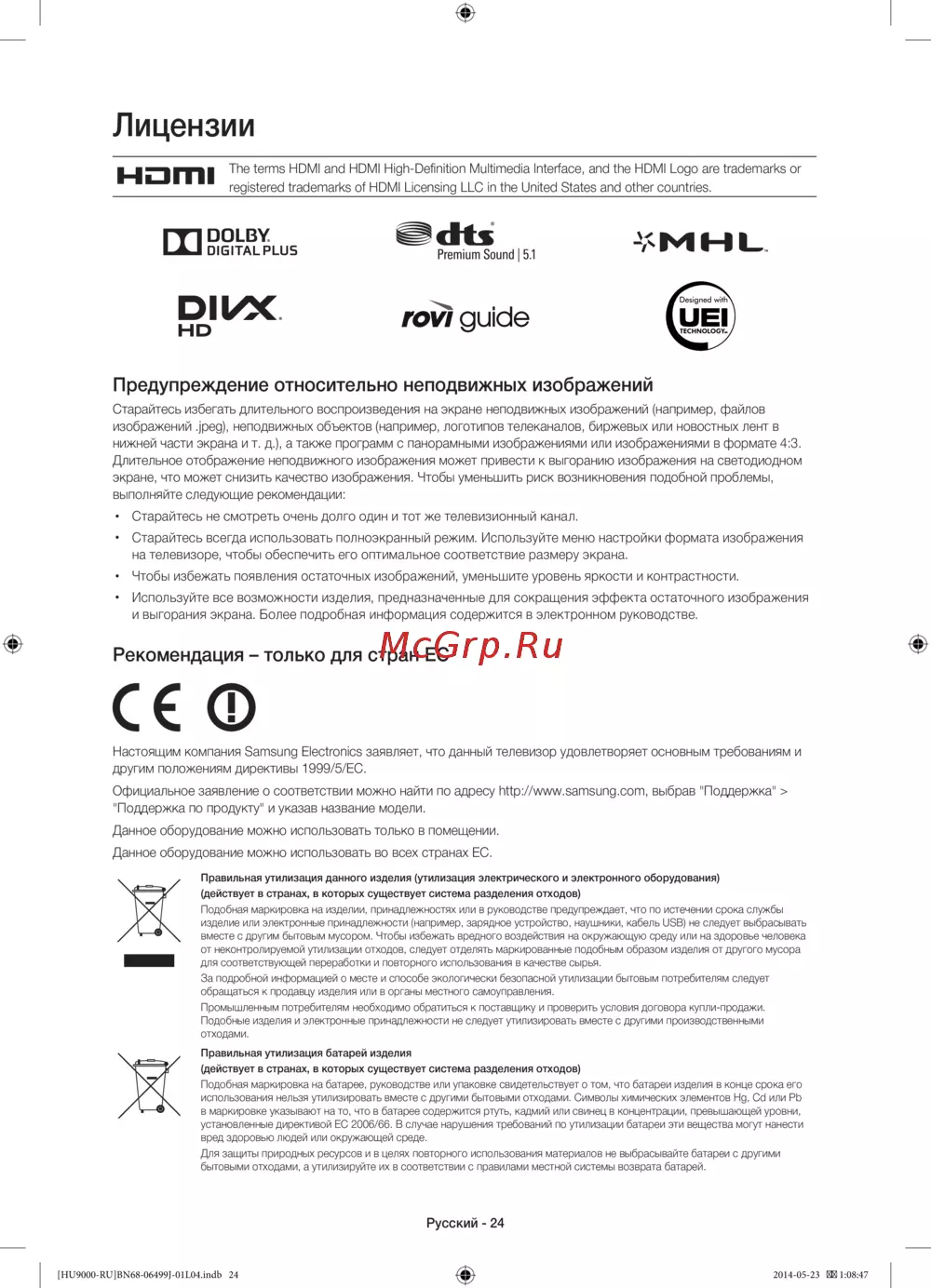 Samsung UE78HU9000T — рекомендации по использованию и утилизации электроники [34/35]