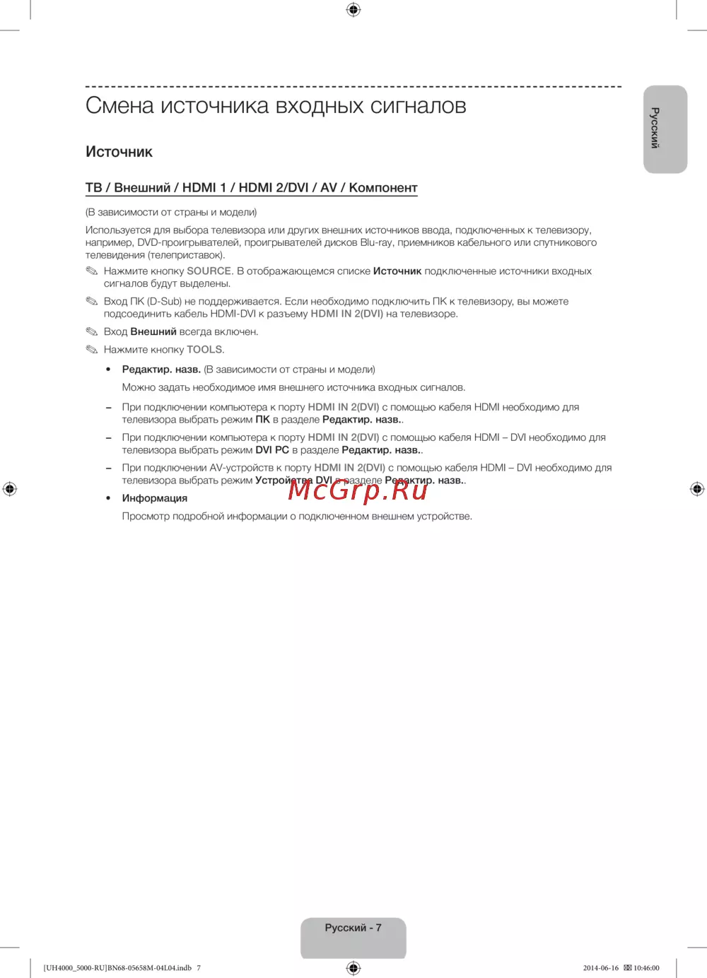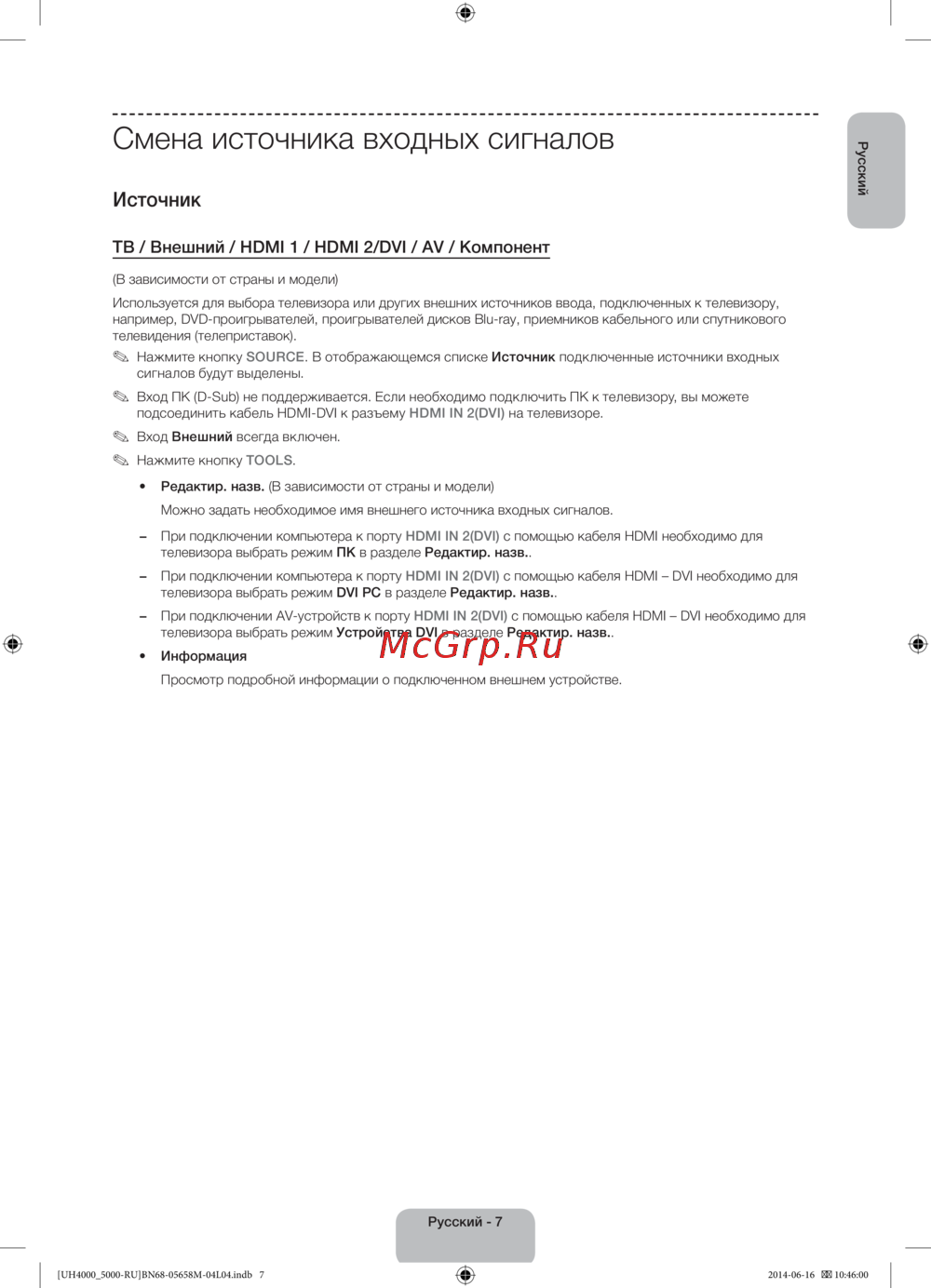 Samsung UE24H4070AU — выбор источника входа для телевизора: HDMI, DVI, AV и другие подключения [17/35]