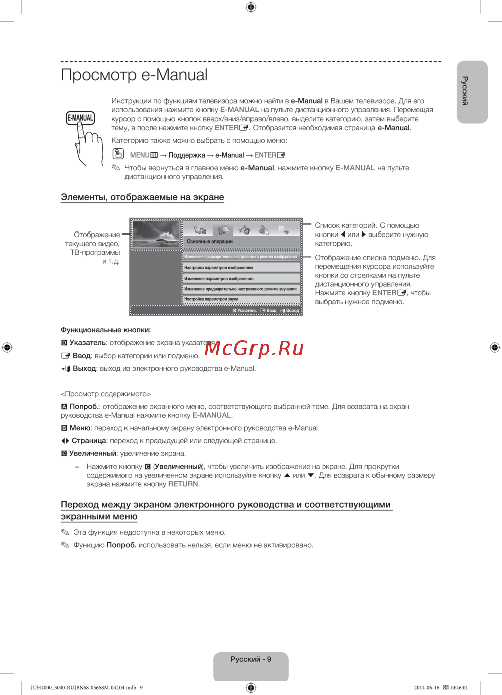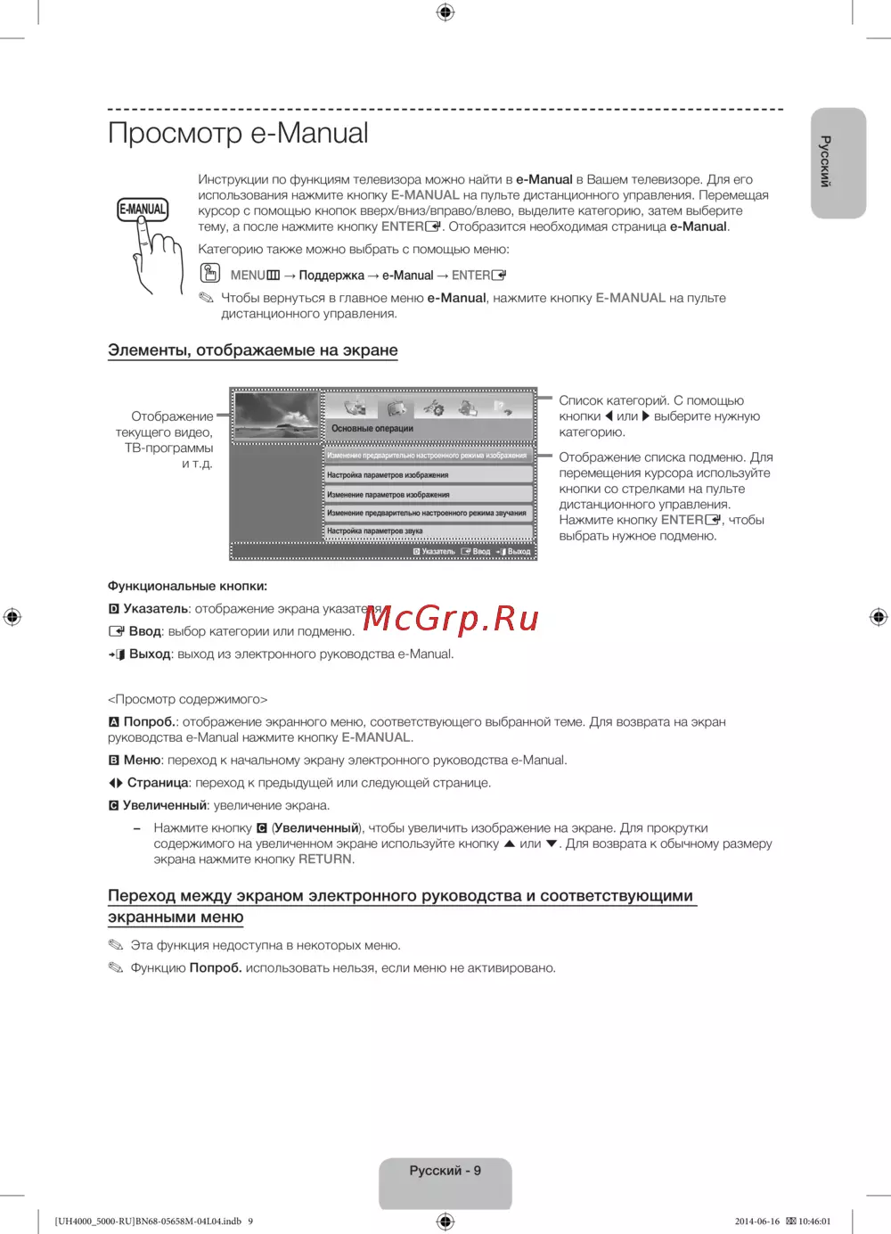 использования нажмите кнопку E-MANUAL на пульте дистанционного управления. Перемещая