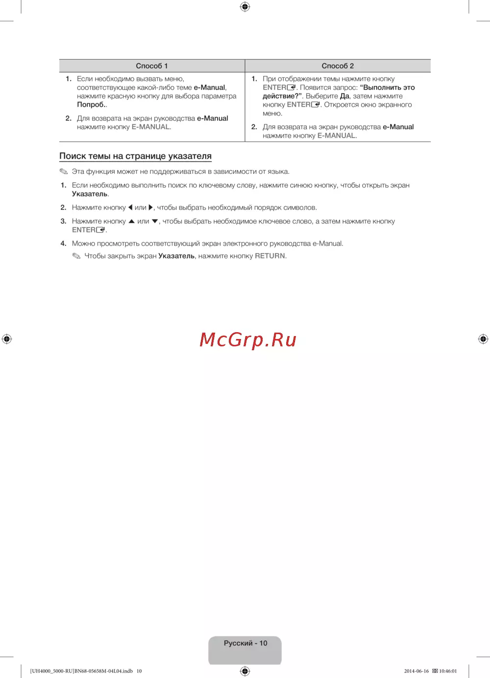 нажмите кнопку E-MANUAL.