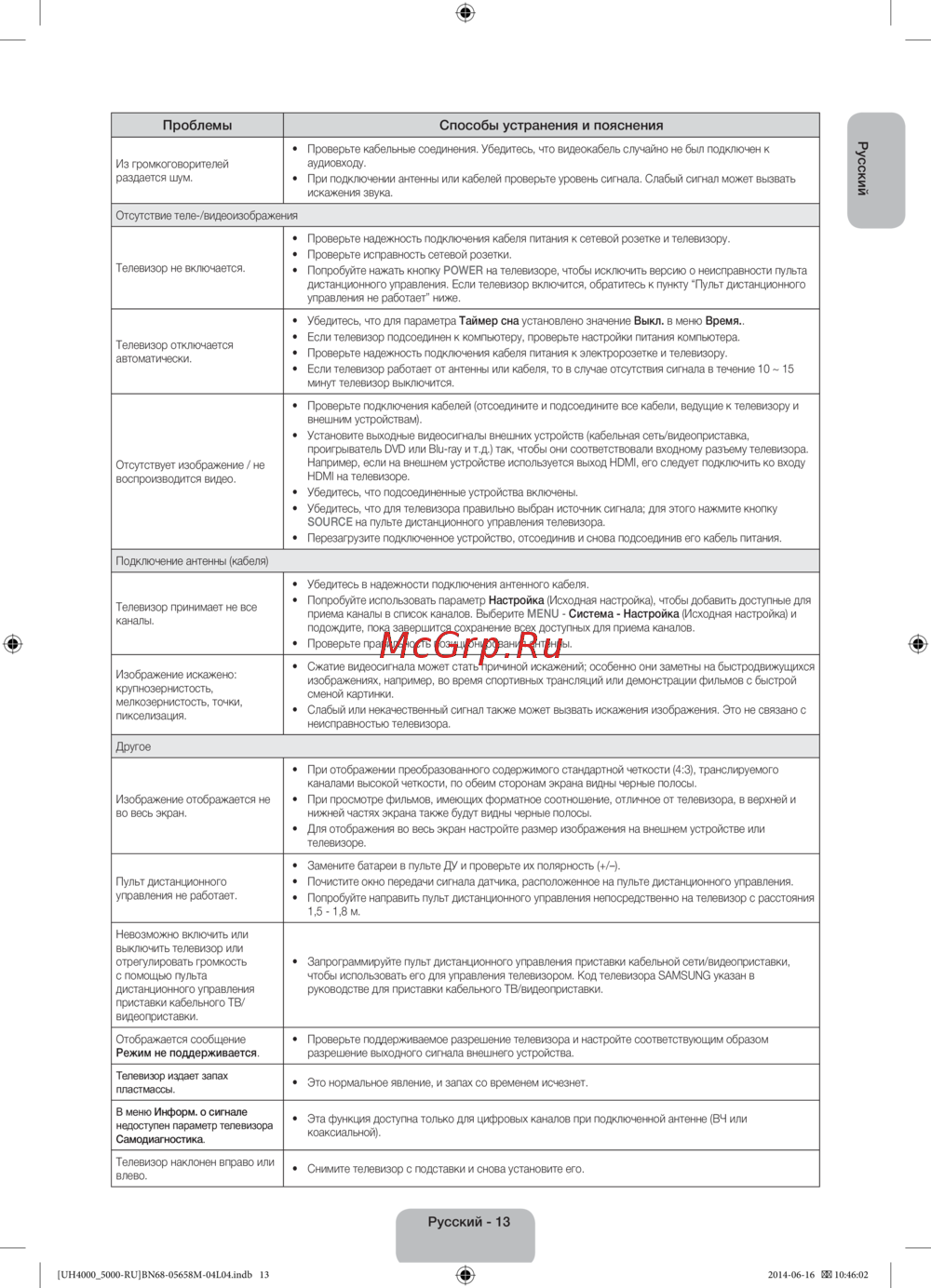 - При возникновении проблем связанных с работой телевизора сначала просмотрите список возможных проблем и способов их устранения если ни один из перечисленных советов не поможет устранить неисправность посетите веб узел www samsung com и выберите пункт поддержка или обратитесь в центр обслуживания клиентов samsung p.22