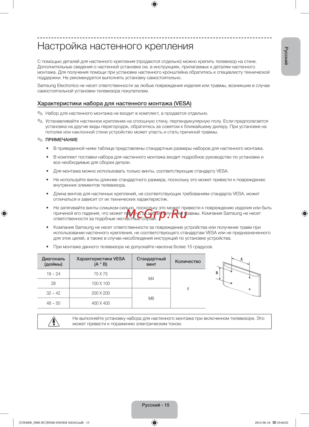 Samsung UE24H4070AU — настенная установка телевизора: инструкция и советы по монтажу [25/35]