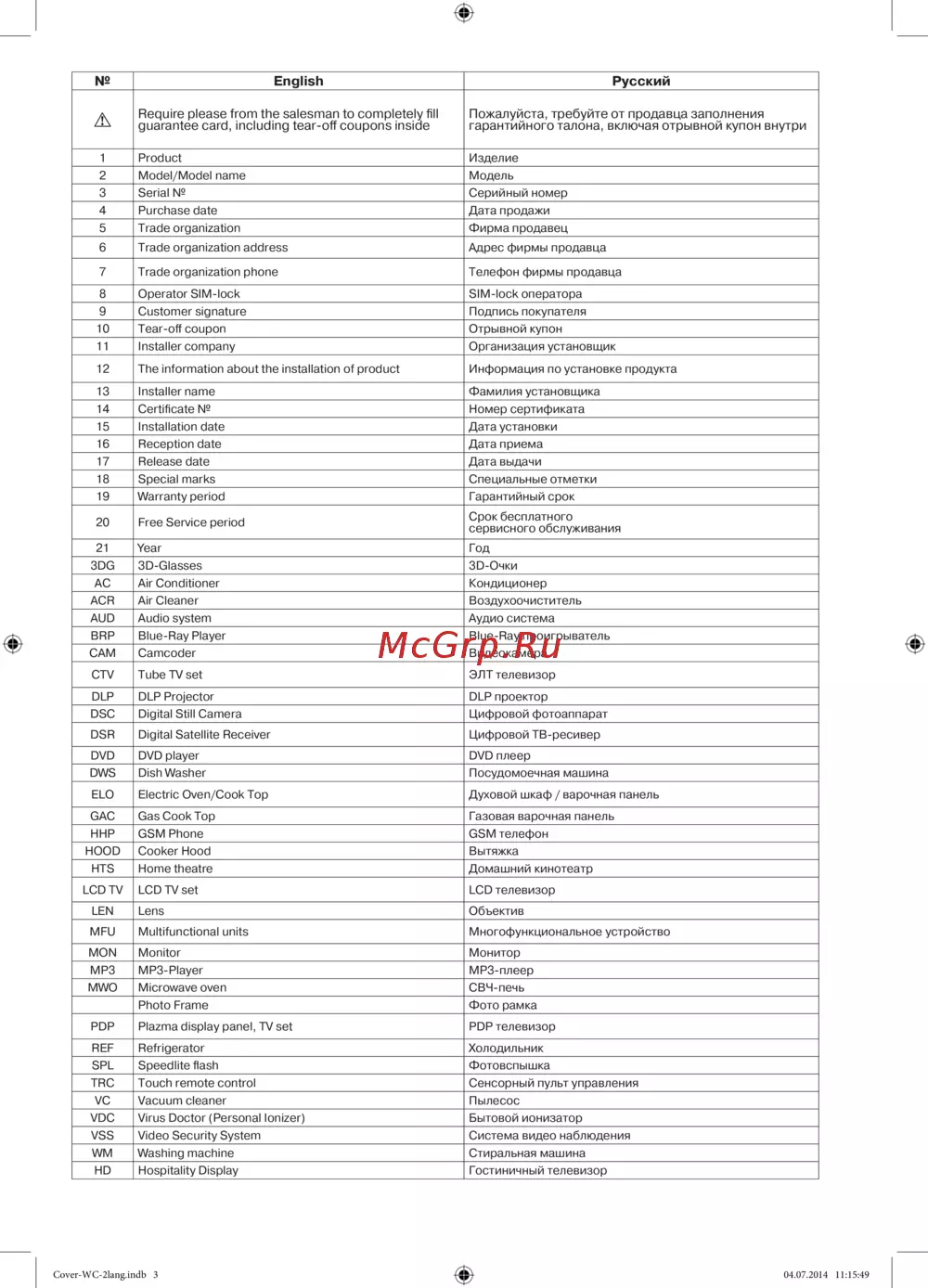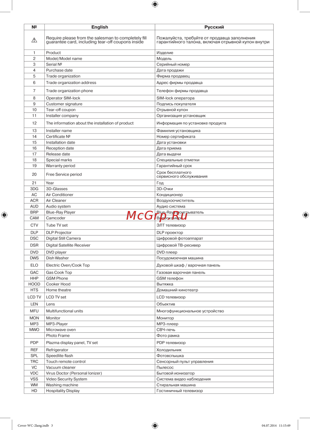 - Пожалуйста требуйте от продавца заполнения гарантийного талона включая отрывной купон внутри p.3
