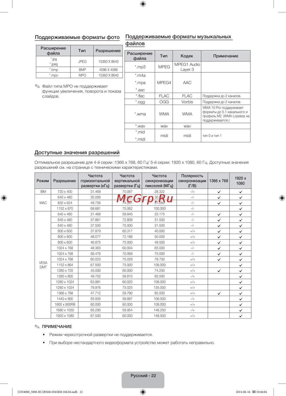 Оптимальное разрешение для 4-й серии :1366 x 768, 60 Гц/ 5-й серии: 1920 x 1080, 60 Гц. Доступные значения