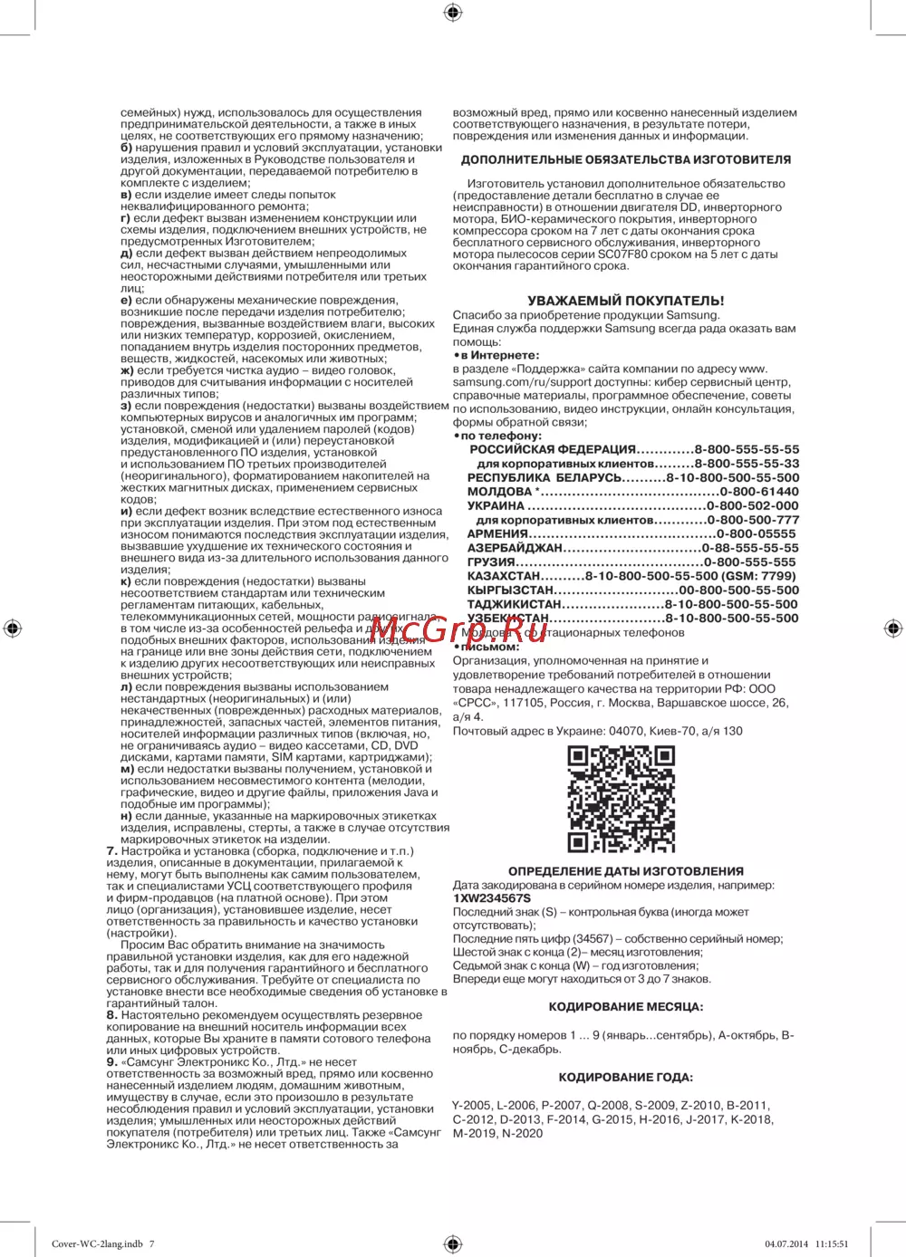 ДОПОЛНИТЕЛЬНЫЕ ОБЯЗАТЕЛЬСТВА ИЗГОТОВИТЕЛЯ