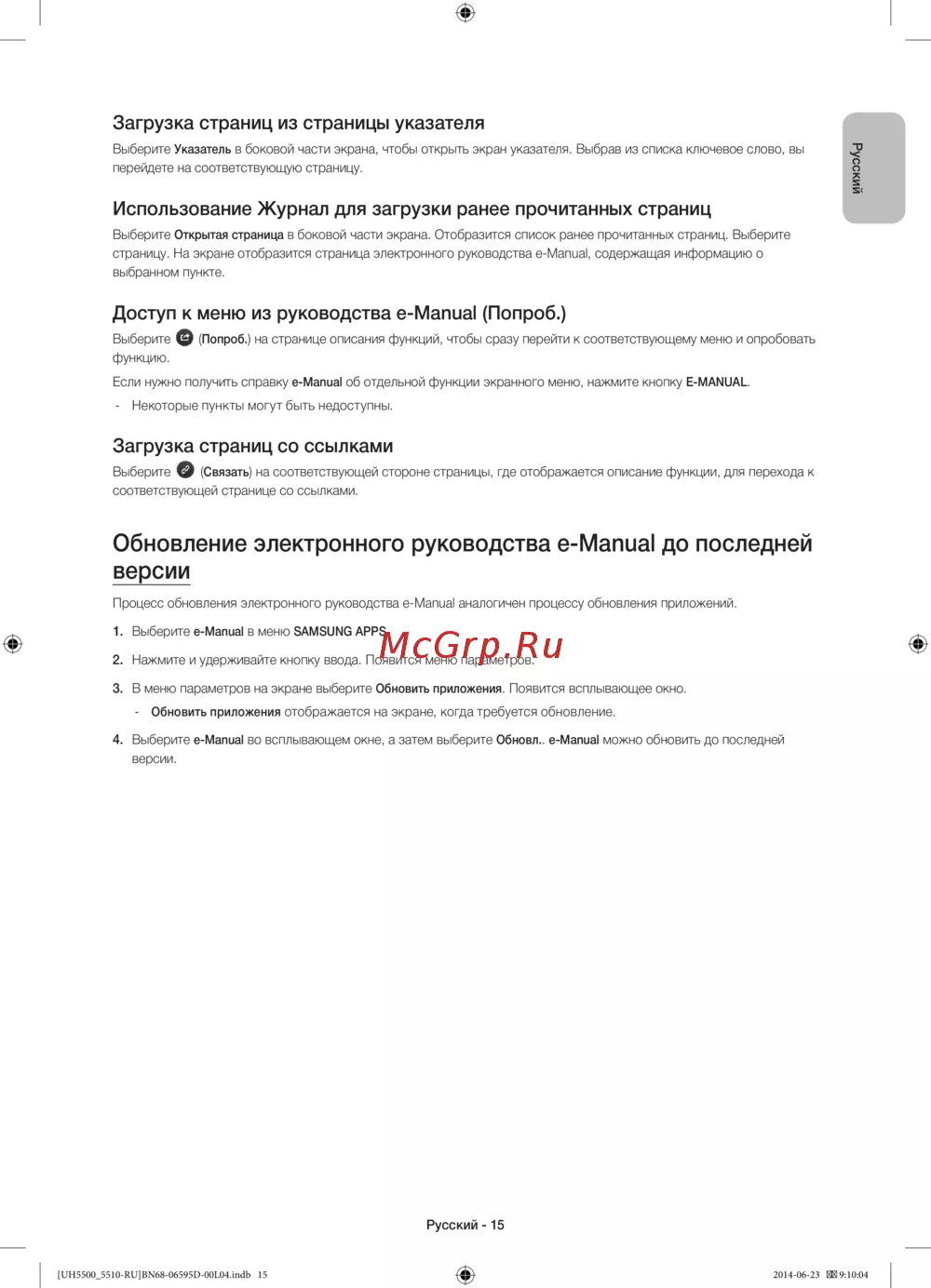 Процесс обновления электронного руководства e-Manual аналогичен процессу обновления приложений.