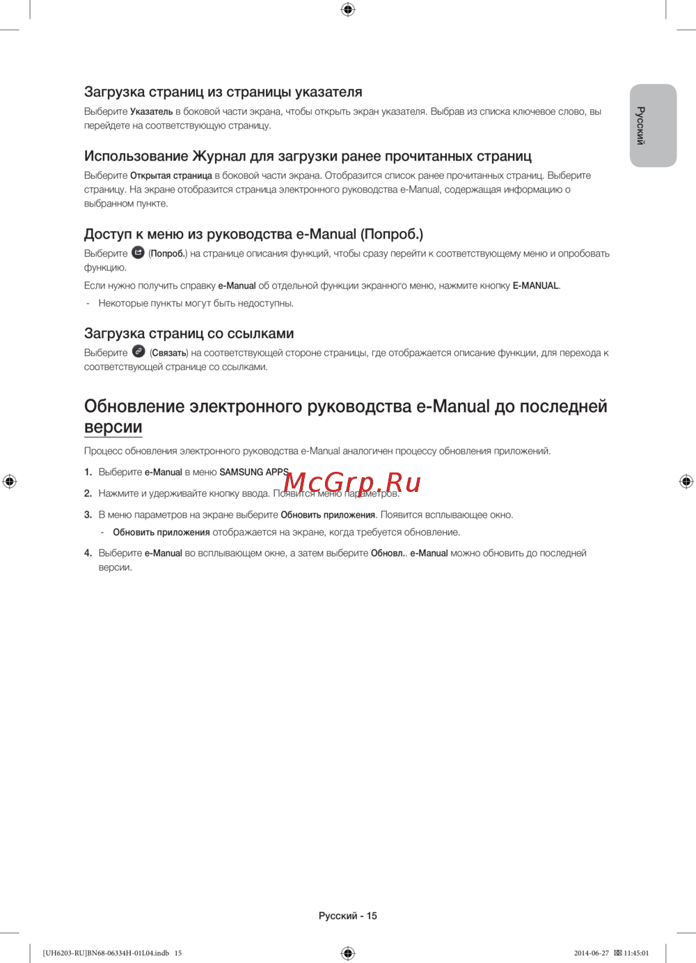 Samsung UE46H6203AK [15/21] Обновление электронного руководства e manual до последней версии