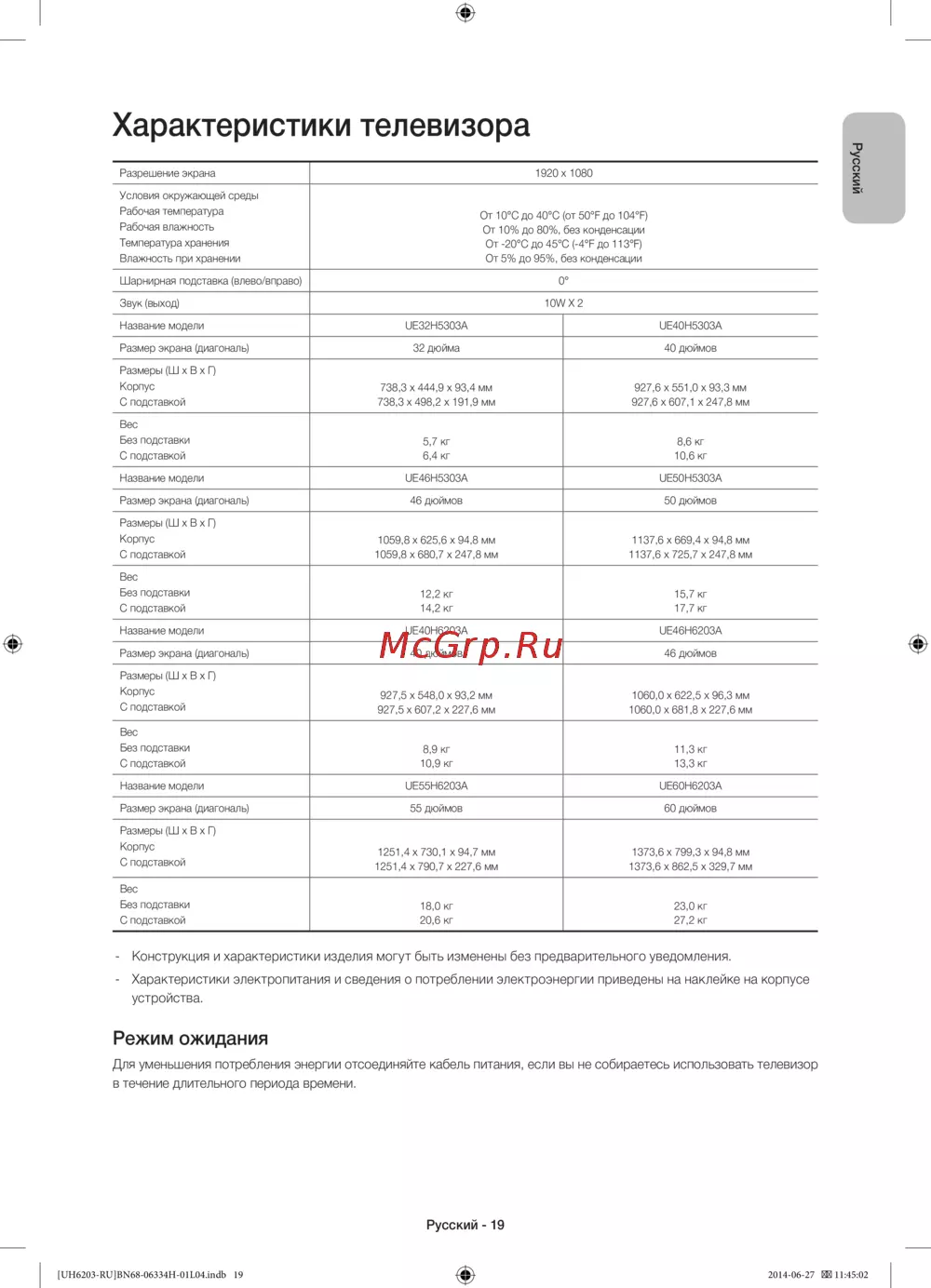 - Характеристики телевизора p.19