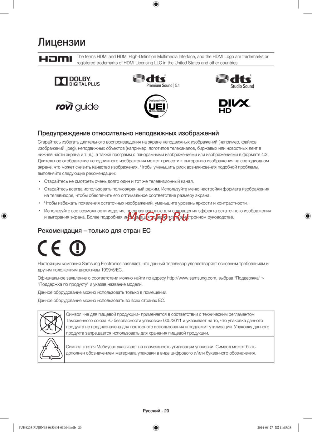 ![Samsung UE46H6203AK [20/21] Предупреждение относительно неподвижных изображений](/views2/1107571/page20/bg14.png)