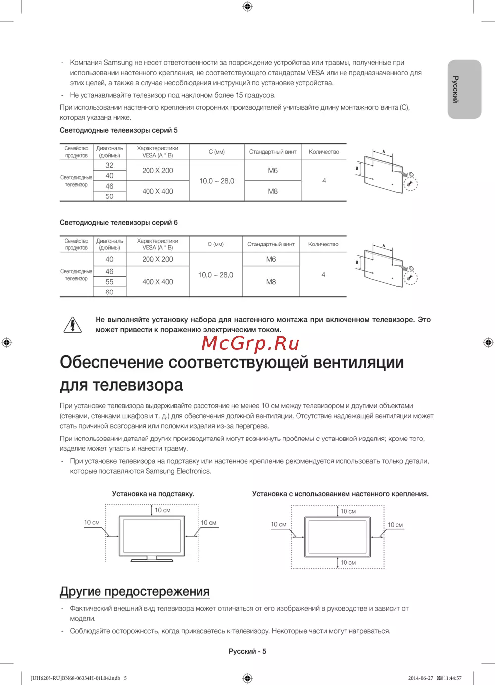 - Обеспечение соответствующей вентиляции для телевизора p.5