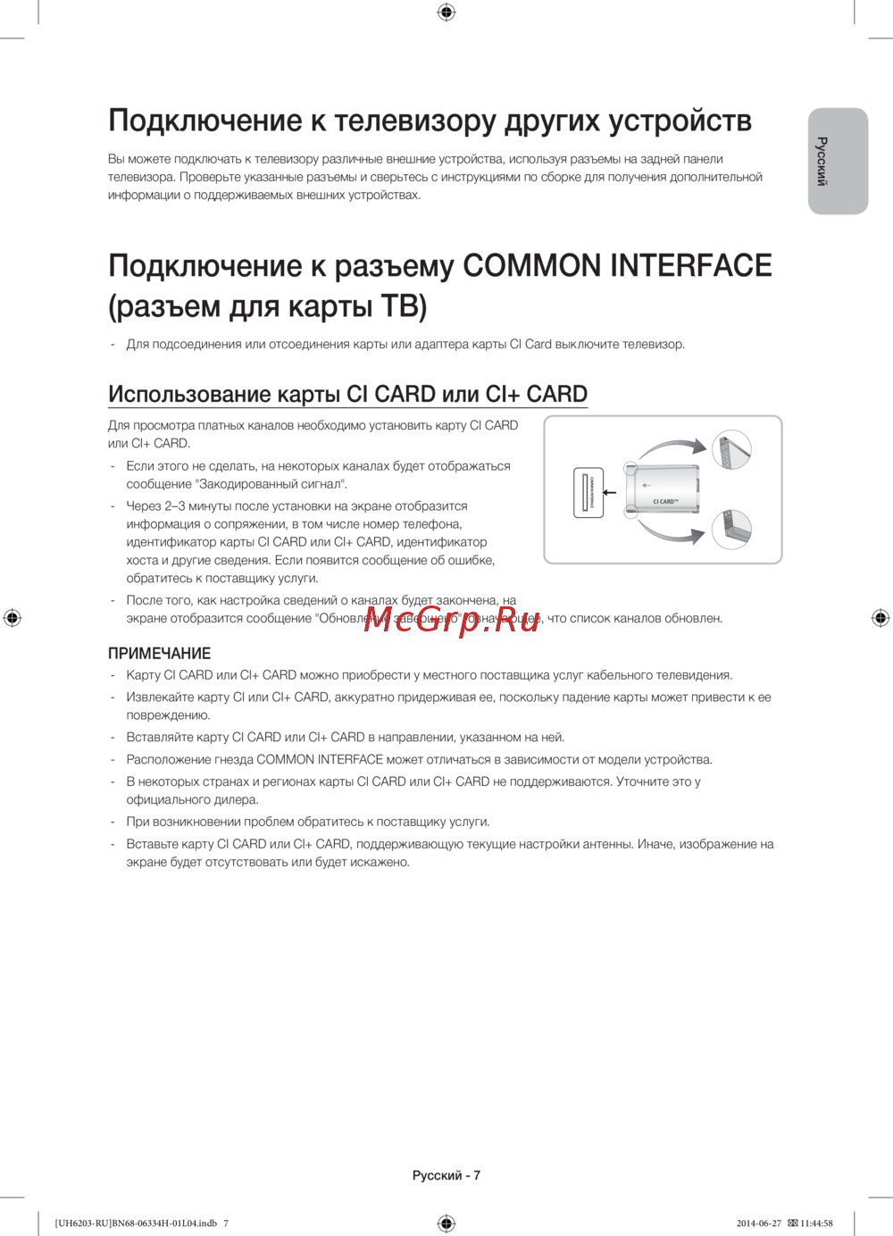 - Подключение к телевизору других устройств p.7