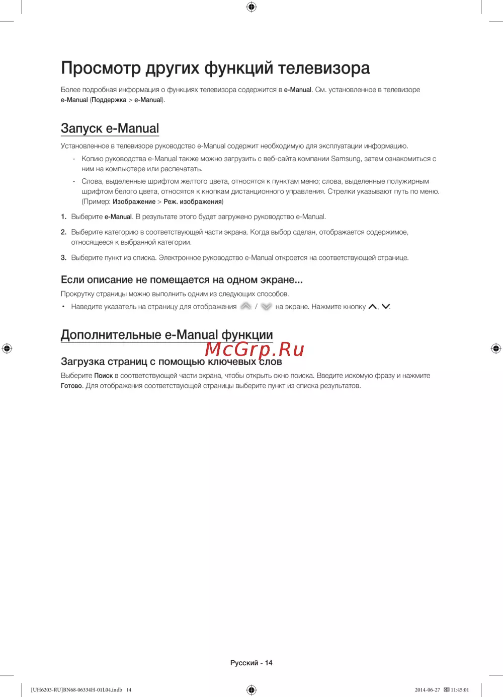 Подробная информация о функциях вашего телевизора. Как использовать e-Manual, поиск по ключевым словам и навигация по меню. Узнайте больше!