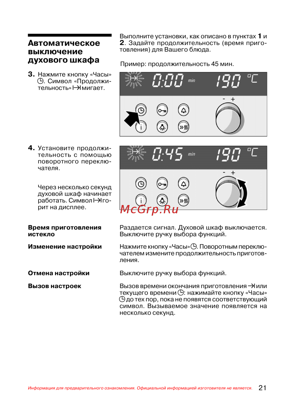 - Если вы хотите узнать как долго будет готовить ся блюдо выполните настройку как описано в пунктах p.29