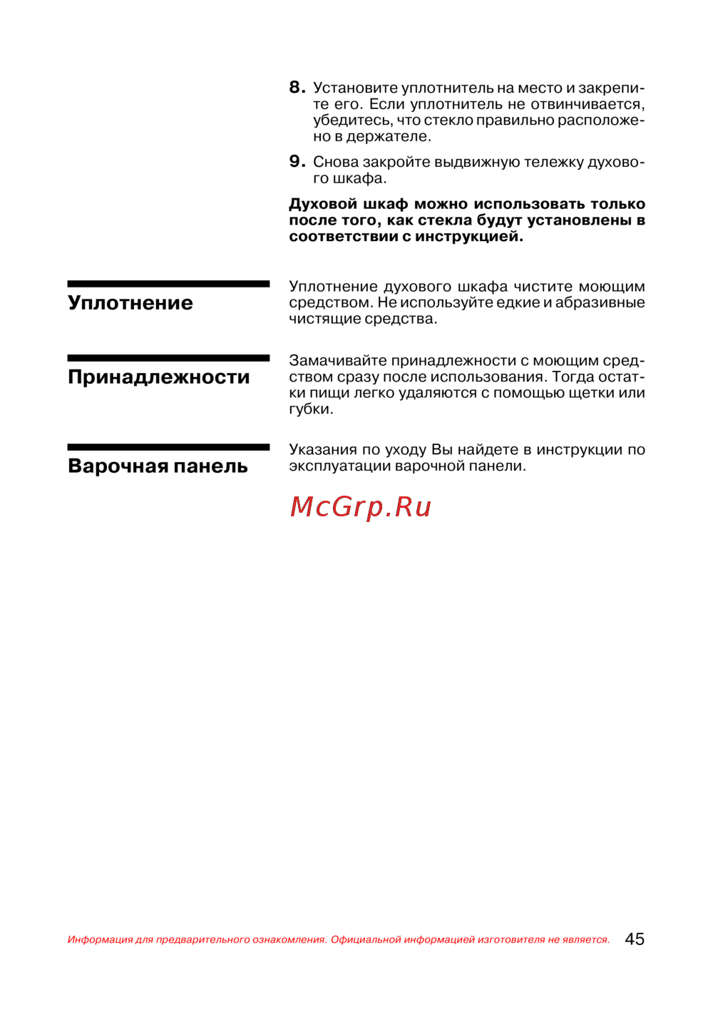 Узнайте, как правильно установить уплотнитель духового шкафа и ухаживать за кухонными принадлежностями. Следуйте инструкциям для безопасного использования.