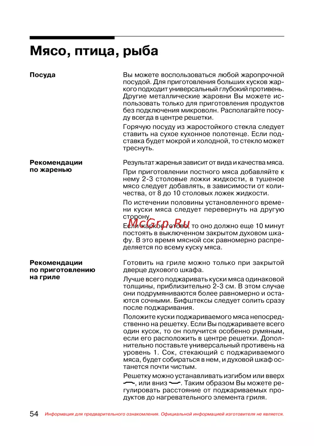- Если для доведения мяса до готовности его не обходимо еще ненадолго поставить в духовой шкаф то в этом случае его не нужно накрывать p.71