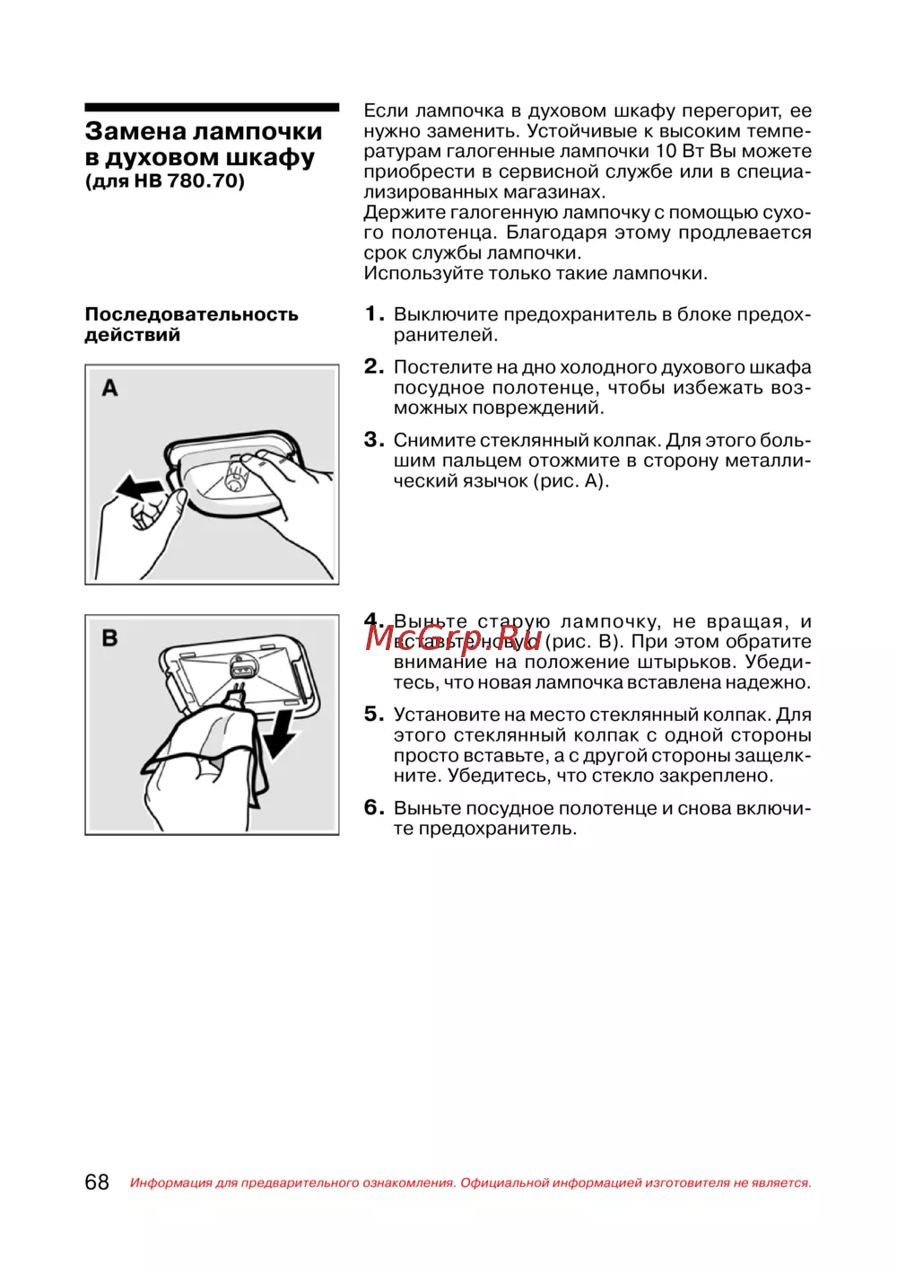 Siemens HB 780.70 — замена лампочки в духовом шкафу: пошаговая инструкция и советы [69/94]