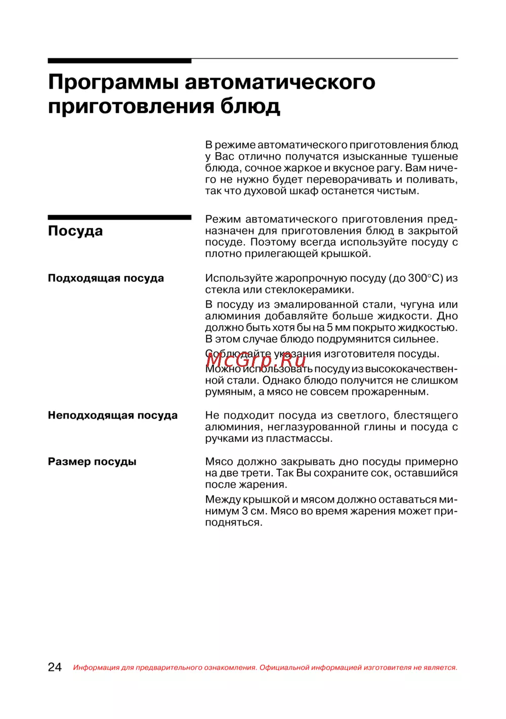 - Рекомендации по программам автоматического приготовления блюд p.31