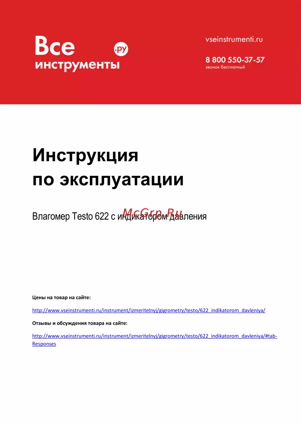 Testo 622 c поверкой к0000013849Инструкция к товару -