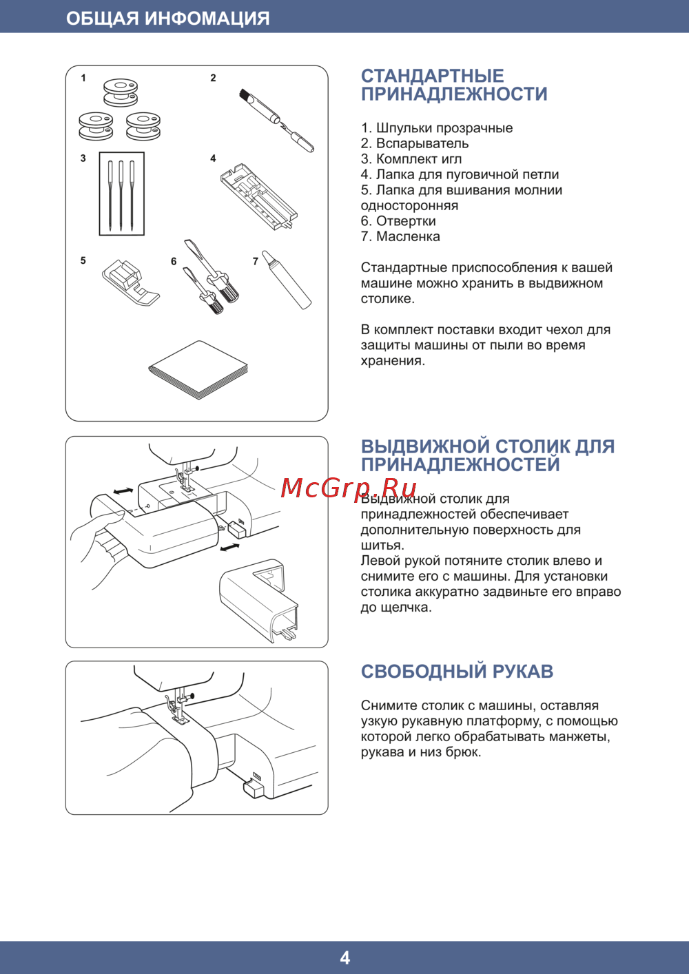 Comfort 35 — общая информация о стандартных принадлежностях для шитья [5/34]