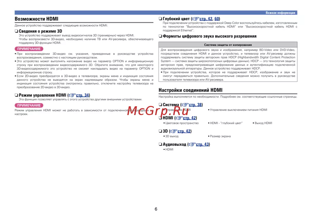 Узнайте о возможностях подключения через HDMI, поддержке Deep Color и 3D-видео. Получите советы по настройке и совместимости с AV-ресиверами и телевизорами.