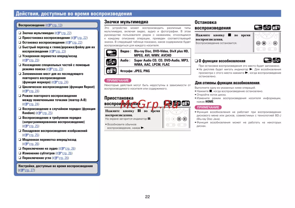 - Воспроизведение аудио и видео в режиме pure direct без наложения аудио и видео p.6