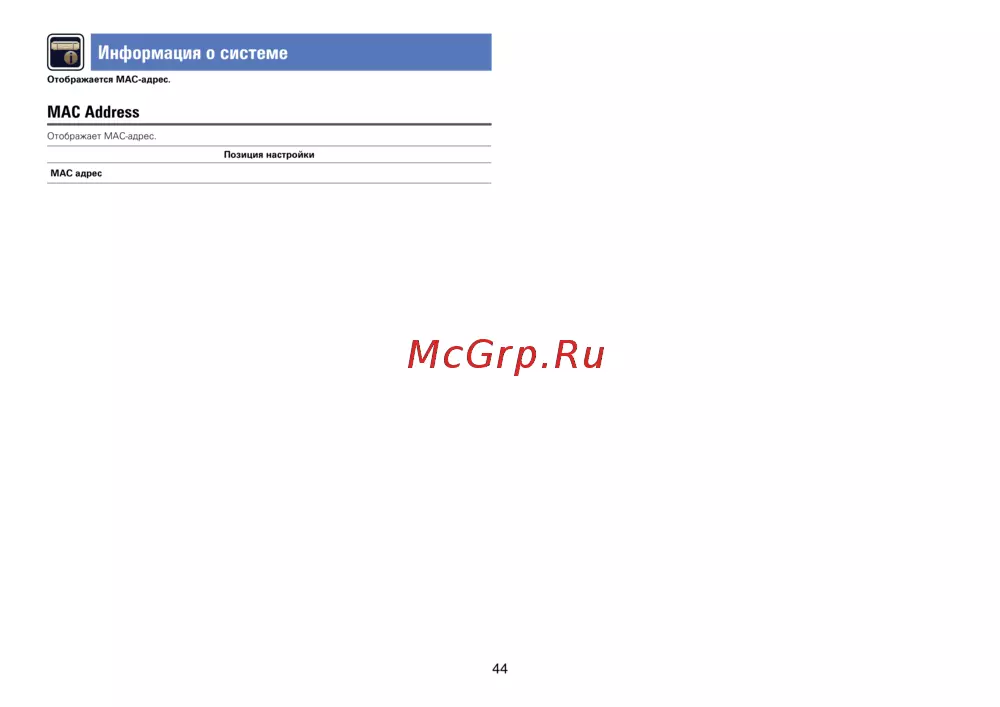 Отображает MAC-адрес.
