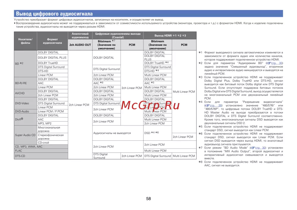 z2 Если для параметра “Аудиорежим BD” (vстр. 30)