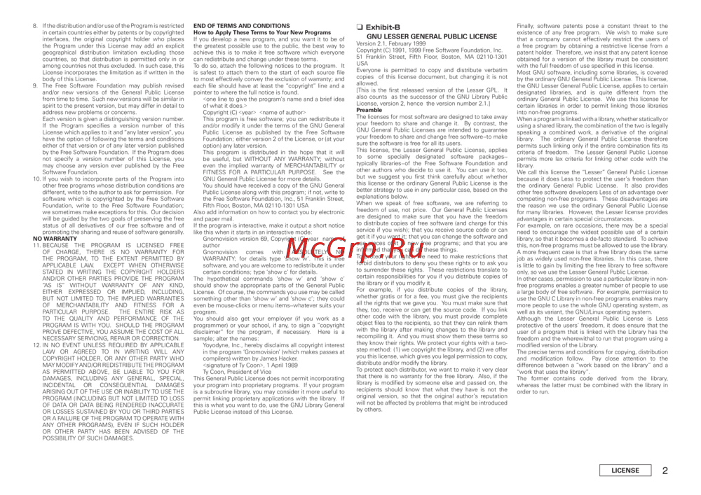 - Exhibit b gnu lesser general public license p.75