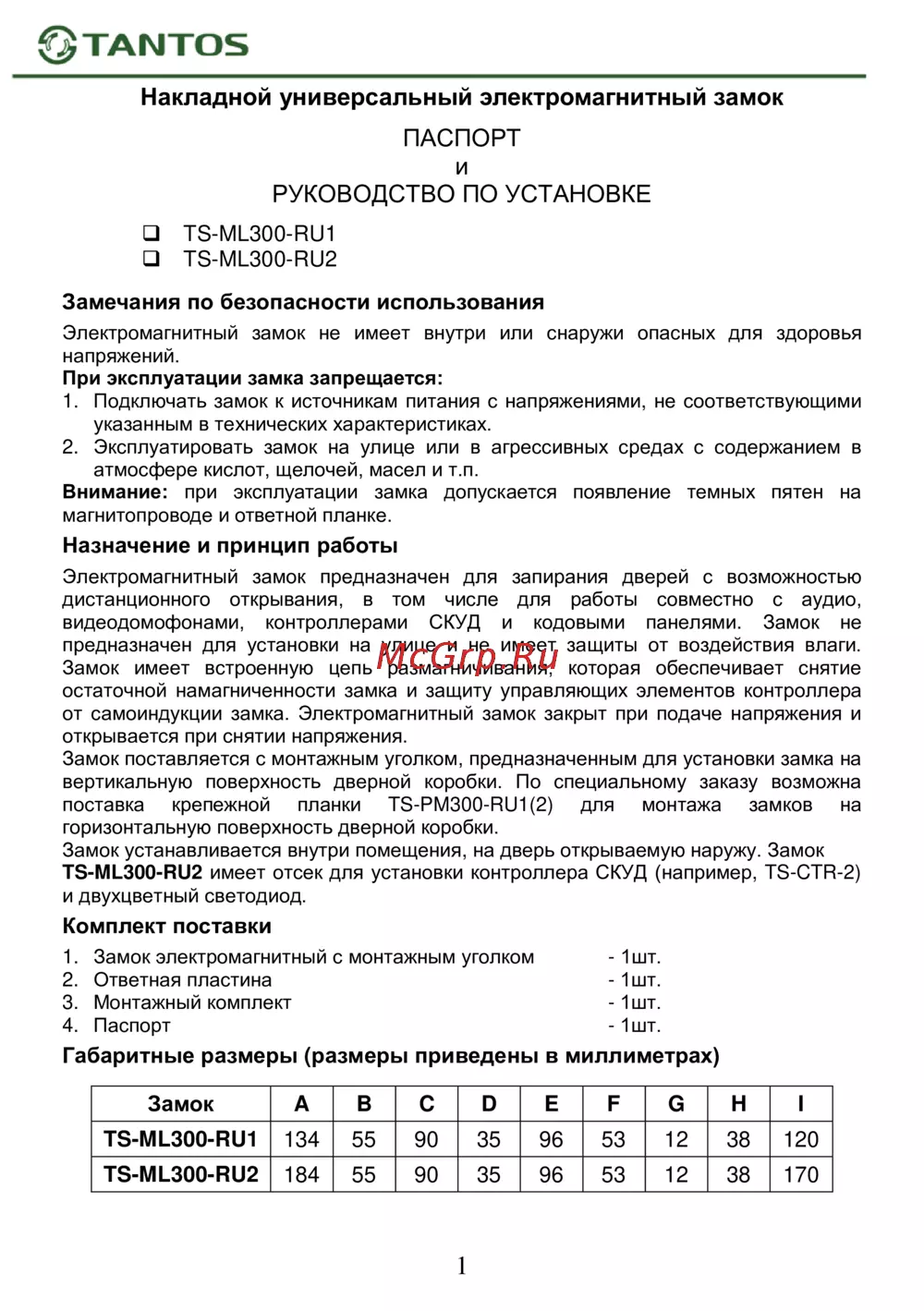 Tantos TS-ML300 с усилием удержания 300 кг 00-00017700Инструкция к товару -