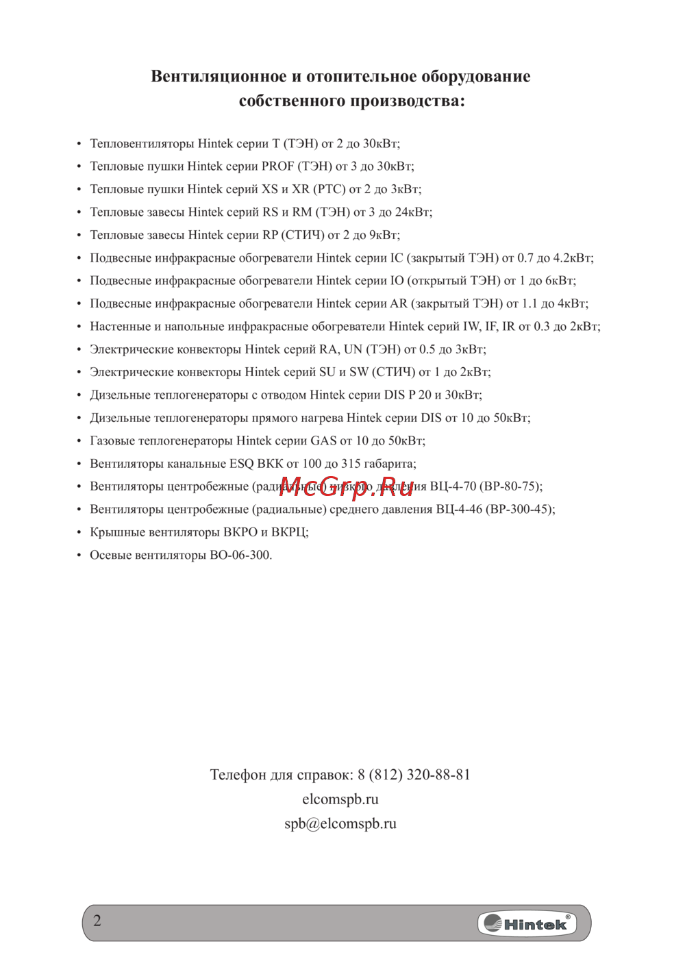 • Тепловые завесы Hintek серии RP (СТИЧ) от 2 до 9кВт;