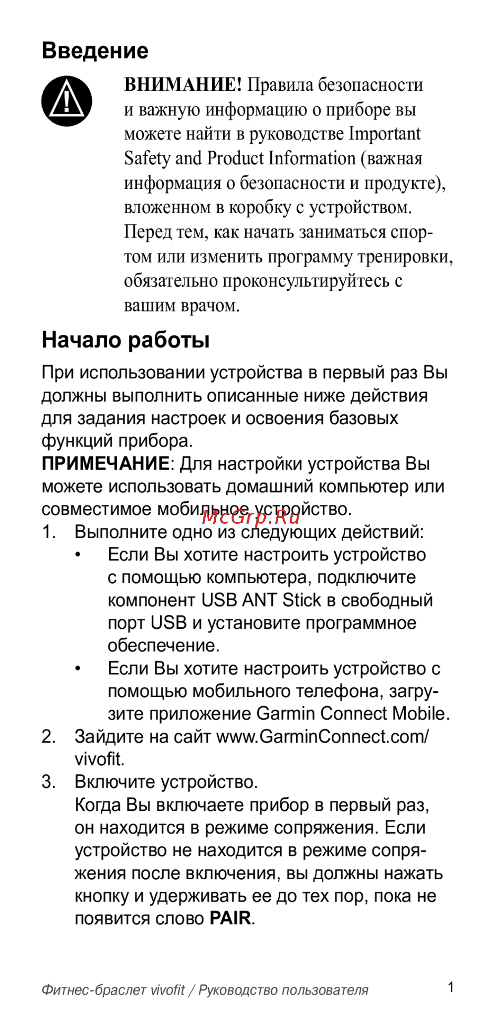 - Внимание правила безопасности и важную информацию о приборе вы можете найти в руководстве important safety and product information важная информация о безопасности и продукте вложенном в коробку с устройством перед тем как начать заниматься спор том или изменить программу тренировки обязательно проконсультируйтесь с вашим врачом p.3