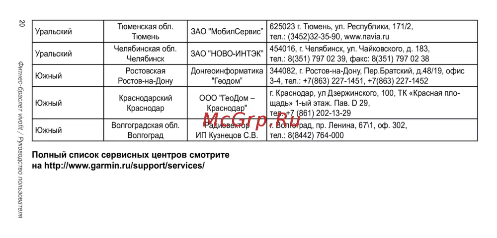 ![Garmin Vivofit Purple Bundle (010-01225-32) [22/23] Полный список сервисных центров смотрите на http www garmin ru support services](/views2/1110705/page22/bg16.png)