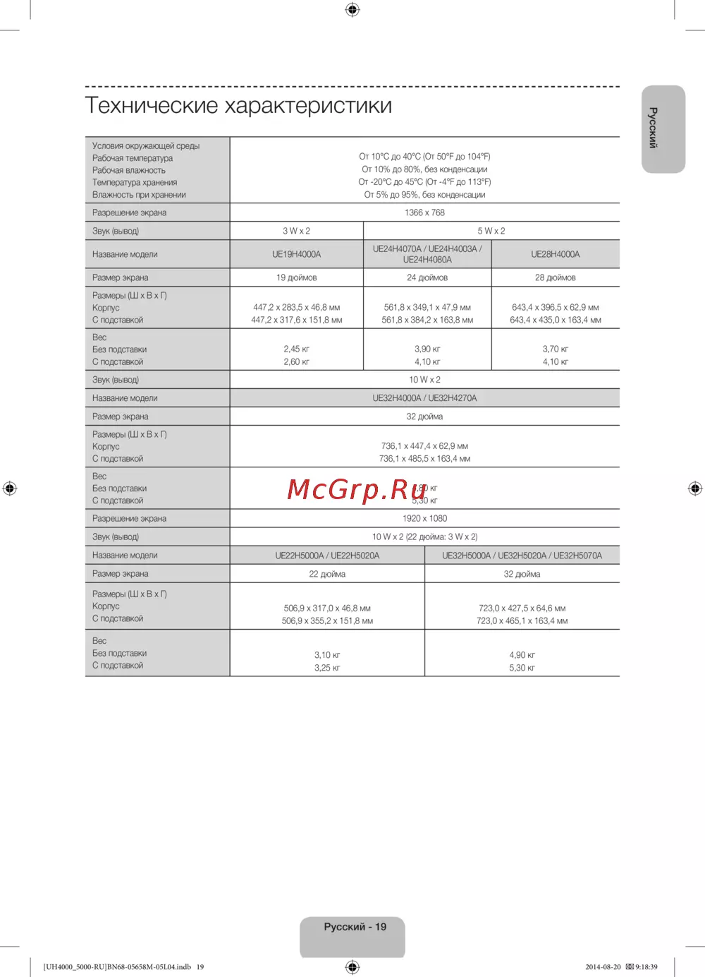 Samsung UE24H4080AU [19/100] Технические характеристики