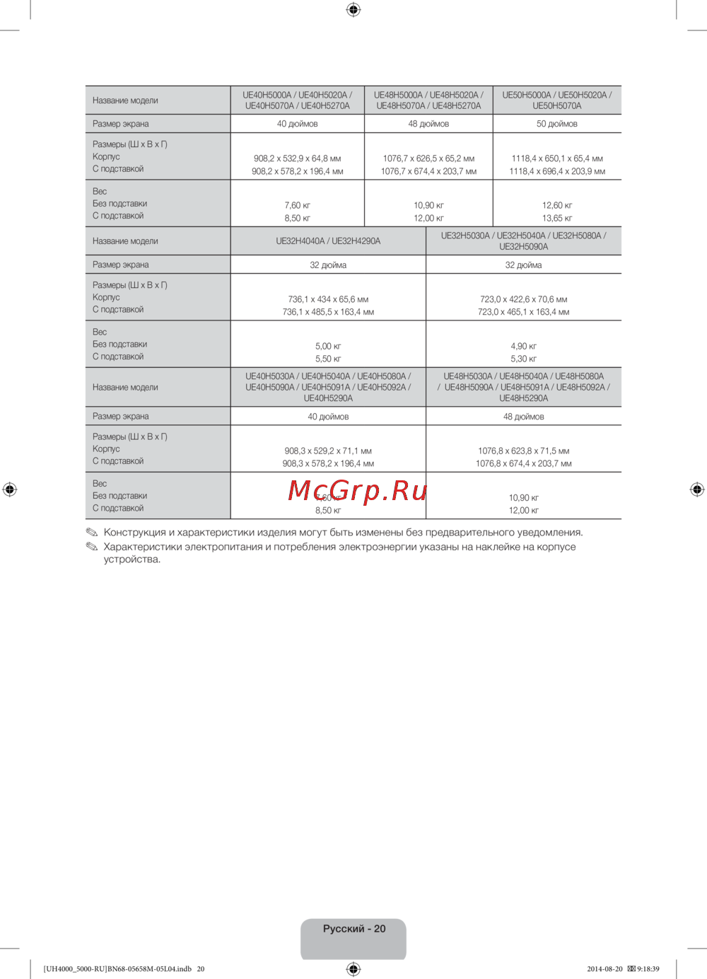 ![Samsung UE24H4080AU [20/100] Характеристики электропитания и потребления электроэнергии указаны на наклейке на корпусе устройства](/views2/1110834/page20/bg14.png)