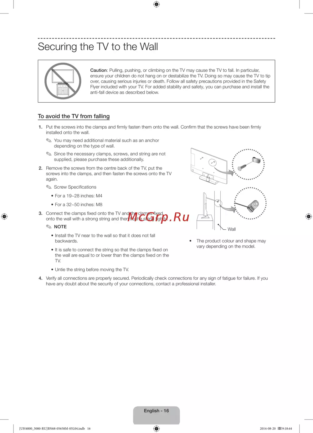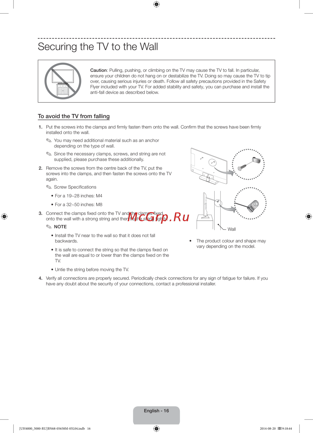 Samsung UE24H4080AU — как надежно закрепить телевизор на стене для безопасности [41/100]