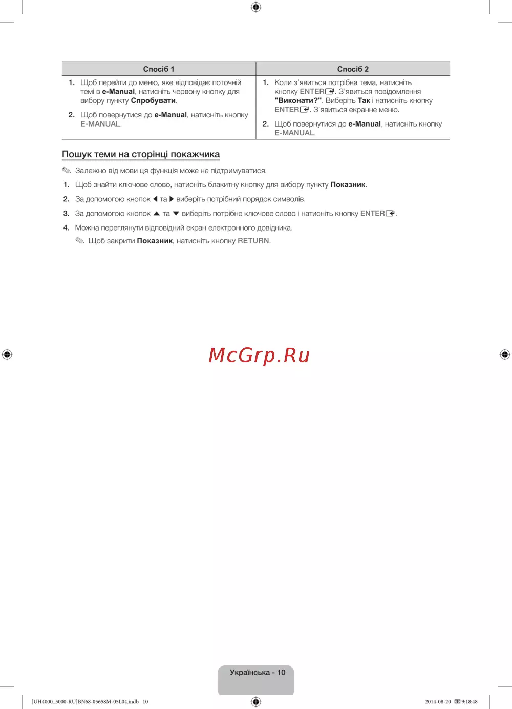2. Щоб повернутися до e-Manual, натисніть кнопку
