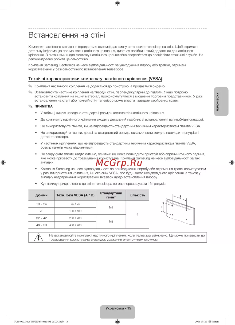 Samsung UE24H4080AU — встановлення настінного кріплення для телевізора: інструкції та поради [65/100]