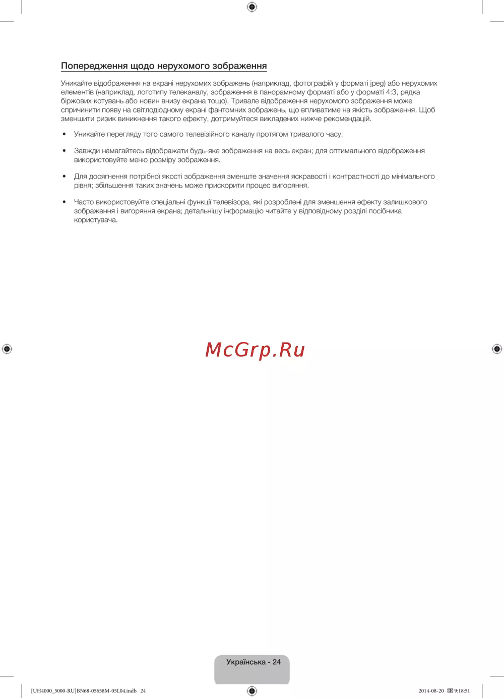 Samsung UE24H4080AU — попередження щодо нерухомих зображень на екрані телевізора [74/100]