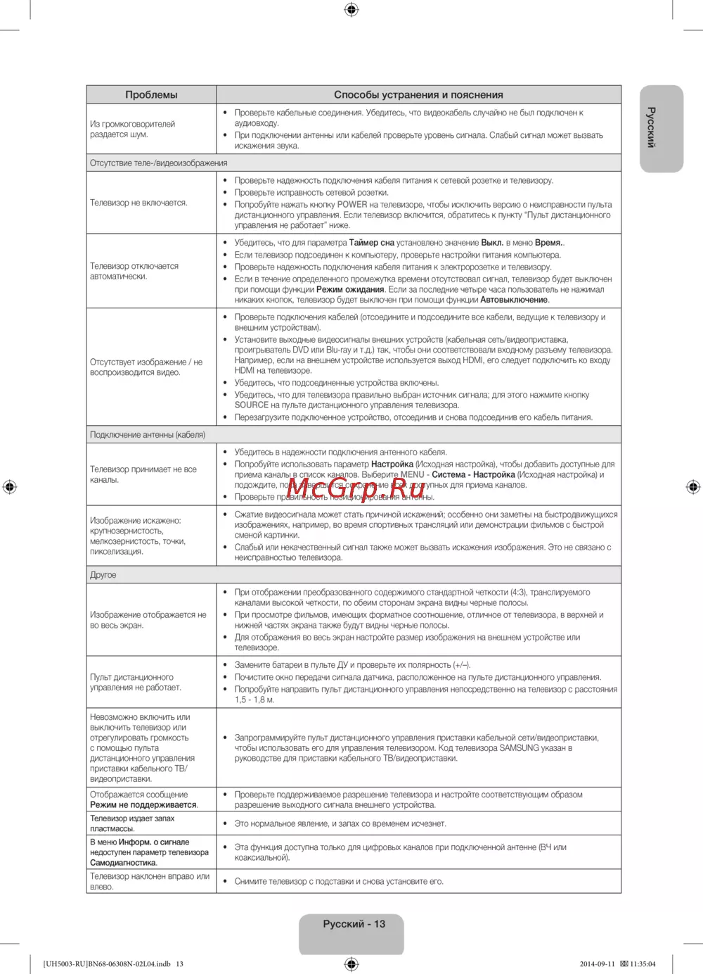 - При возникновении проблем связанных с работой телевизора сначала просмотрите список возможных проблем и способов их устранения если ни один из перечисленных советов не поможет устранить неисправность посетите веб узел www samsung com и выберите пункт поддержка или обратитесь в центр обслуживания клиентов samsung p.12