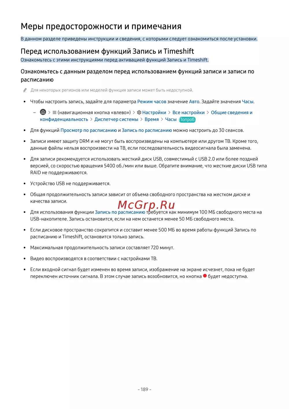 Для некоторых регионов или моделей функция записи может быть недоступной.
