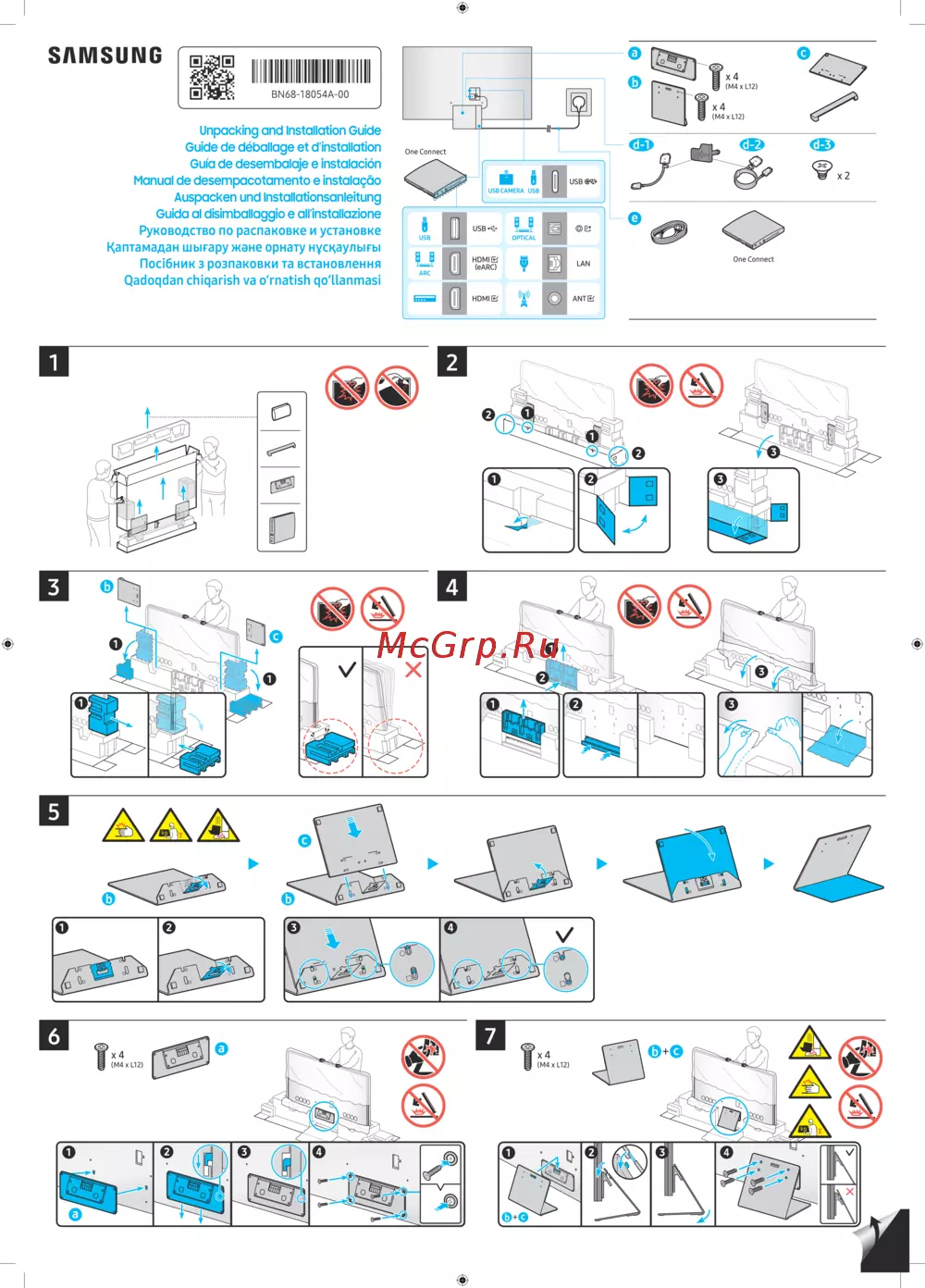 Samsung QE65S95DAUРуководство по распаковке и установке -