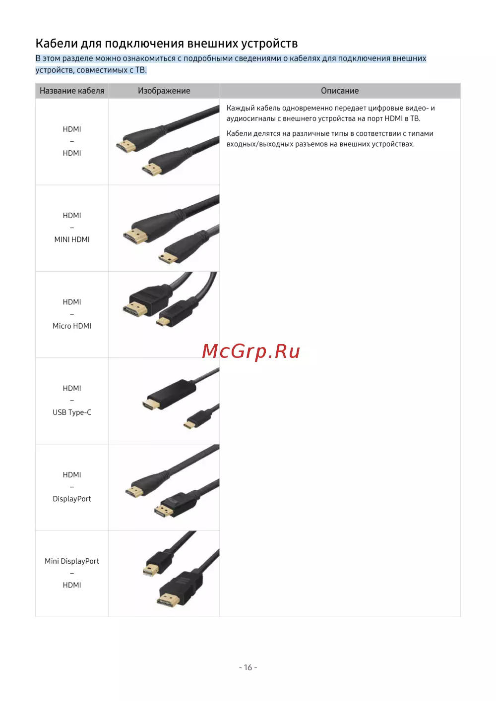 В этом разделе можно ознакомиться с подробными сведениями о кабелях для подключения внешних
