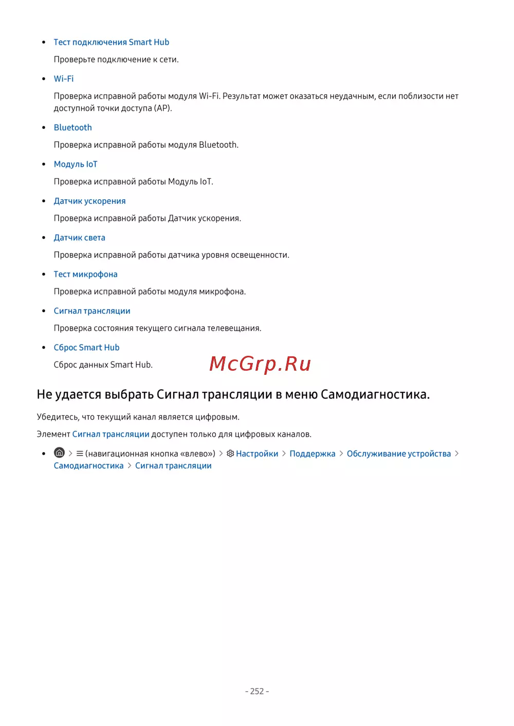 Не удается выбрать Сигнал трансляции в меню Самодиагностика.
