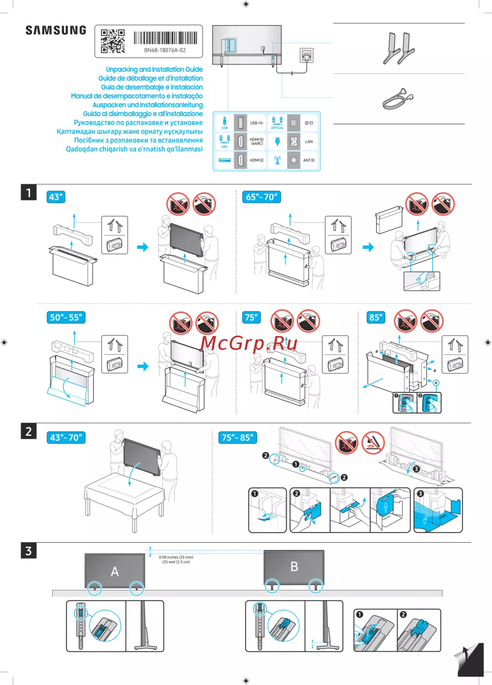 Samsung UE43DU8500UРуководство по распаковке и установке -