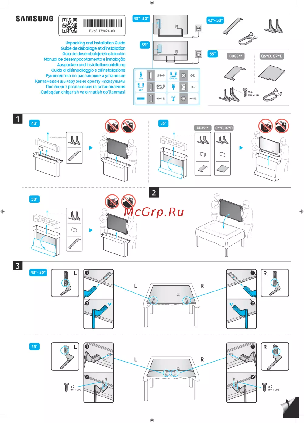 Samsung UE43DU8500U Руководство по распаковке и установке онлайн