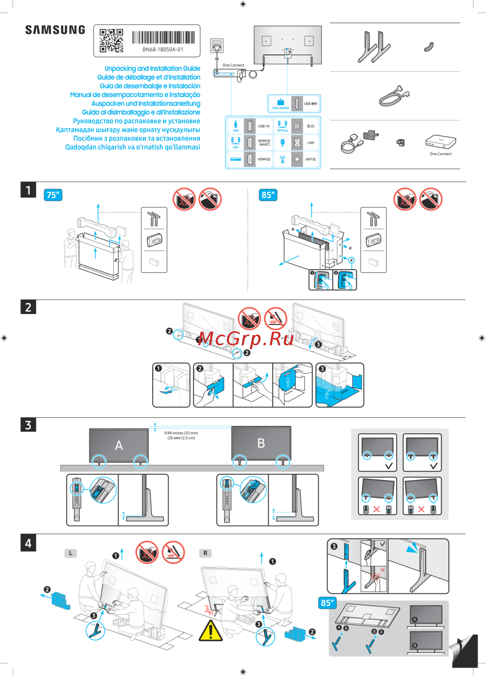 Samsung QE50LS03DAUРуководство по распаковке и установке -